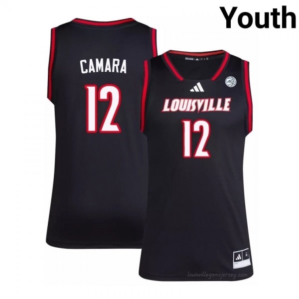 Black Mouhamed Camara #12 Louisville Cardinals Youth Player Jersey | Premium Stitch Basketball Fan Apparel