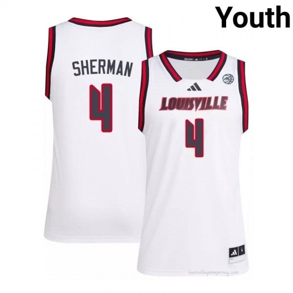 Cole Sherman #4 White Louisville Youth University Basketball Jersey | Cardinal Nation Essential
