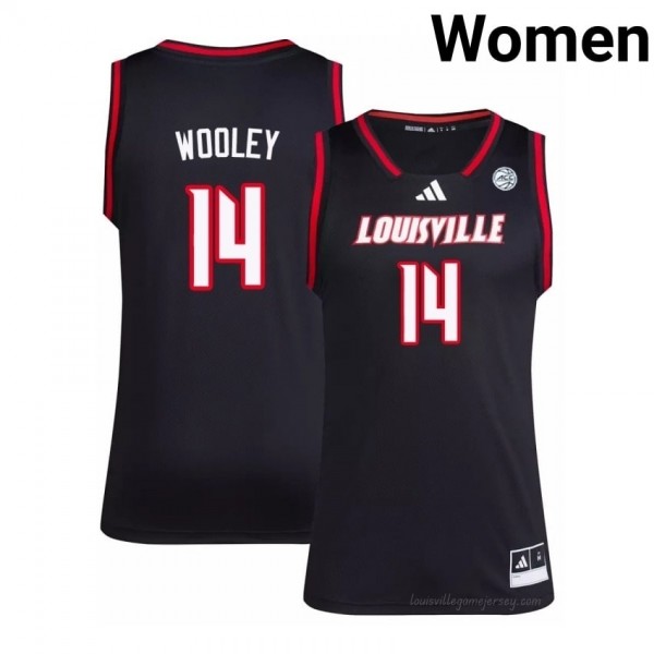 Louisville Cardinals Adrian Wooley #14 Black Women's Basketball Jersey | NCAA Licensed Stitch Replica