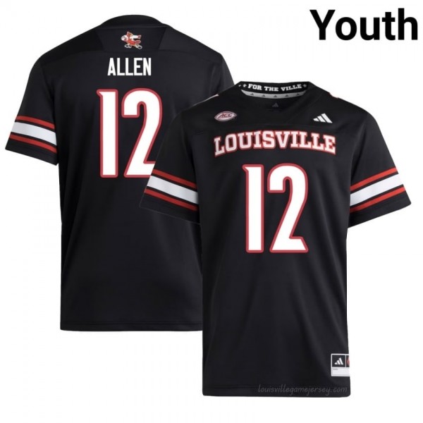 Louisville Cardinals Brady Allen #12 Black Youth Football Jersey | NCAA Licensed Stitch Replica