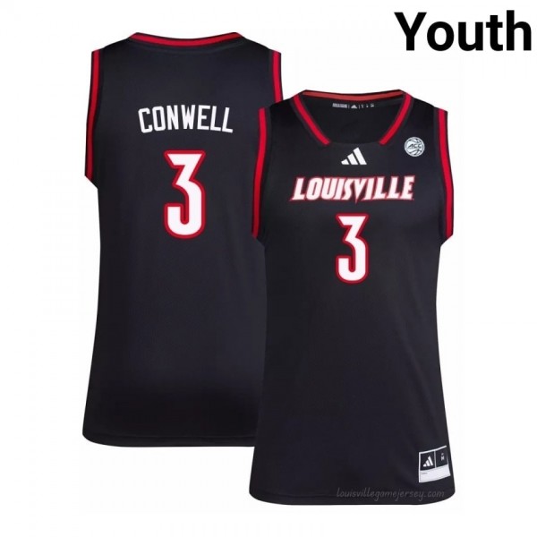 Louisville Cardinals Ryan Conwell #3 Black Youth Basketball Jersey | NCAA Licensed Stitch Replica