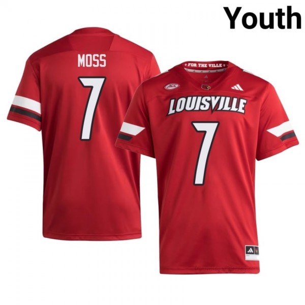 Official Red Miller Moss Cardinals #7 Youth Football Jersey | University of Louisville Gameday Wear