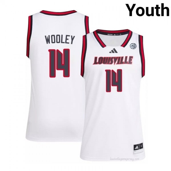 Official White Adrian Wooley Cardinals #14 Youth Basketball Jersey | University of Louisville Gameday Wear