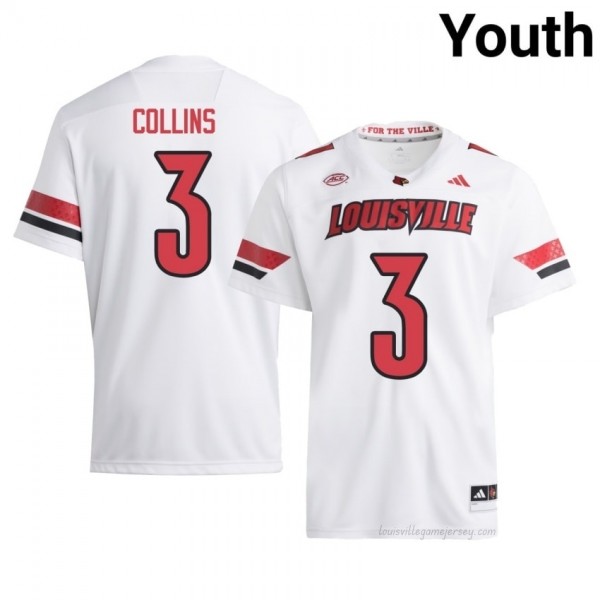 Official White Dacari Collins Cardinals #3 Youth Football Jersey | University of Louisville Gameday Wear