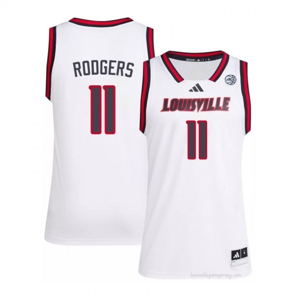 Official White Kobe Rodgers Cardinals #11 Men's Basketball Jersey | University of Louisville Gameday Wear