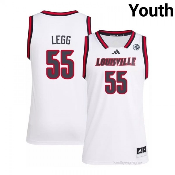 Official White Spencer Legg Cardinals #55 Youth Basketball Jersey | University of Louisville Gameday Wear
